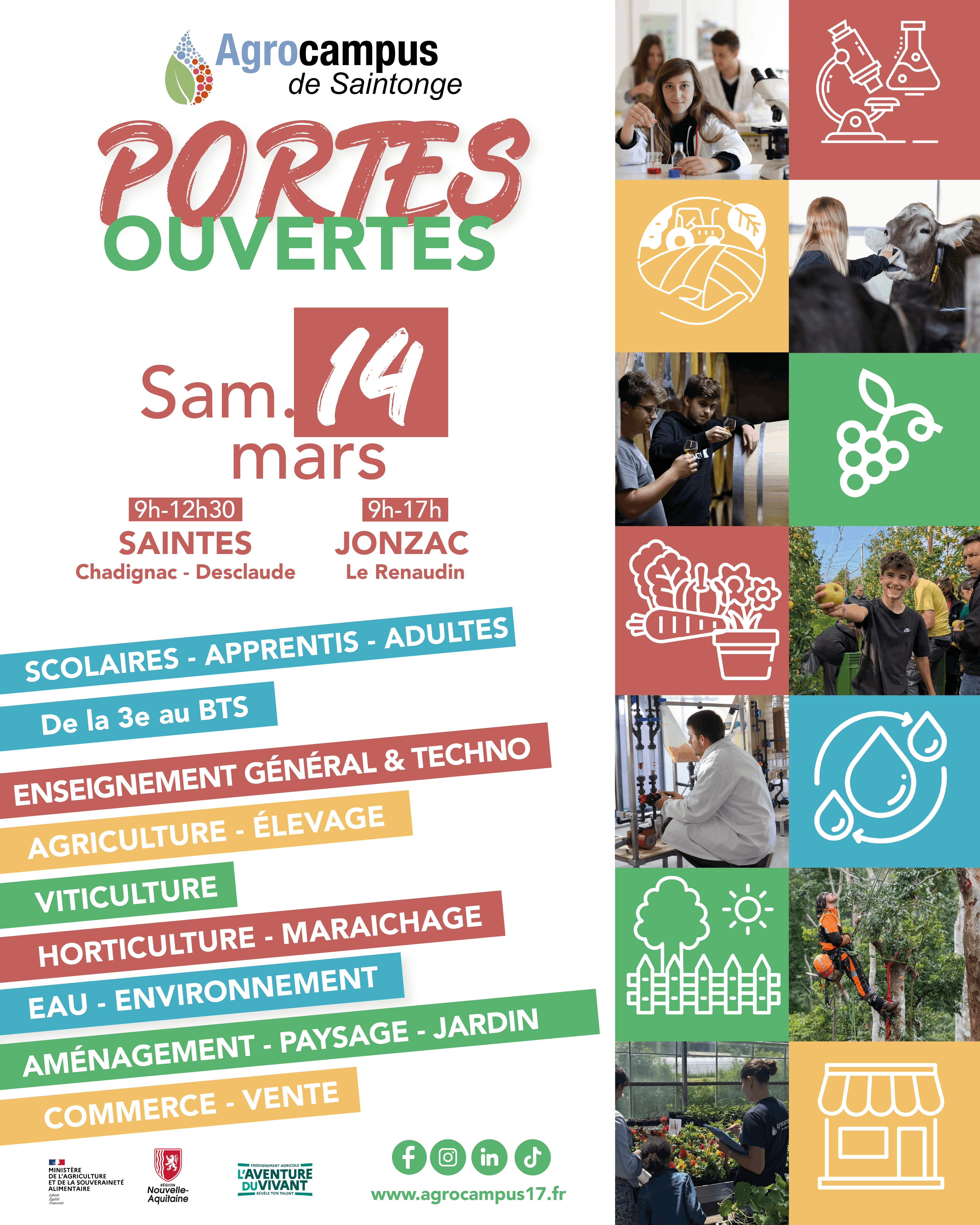 L’Agrocampus de Saintonge vous ouvre ses portes pour découvrir ses formations de la 3ᵉ au BTS, en formation scolaire, apprentissage ou reprise d’études.